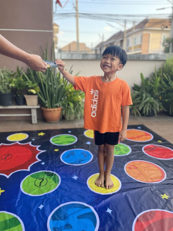 เปลี่ยนพื้นที่หน้าบ้านหรือห้องนั่งเล่นให้เป็นโลกแห่งอวกาศด้วย “The Floor is Space” เกมกระดานมหาสนุกที่จะพาทุกคนไปตะลุยนอกโลกกับเกมอันแสนสนุกด้วยการหยิบลูกบอลแล้วเดินไปตามสีที่ระบุ เพิ่มเติมความตื่นเต้นไปอีกสเต็ปด้วยการจับ Challenge Card แล้วทำตามคำสั่งที่ได้รับ แถมลวดลายบนกระดานก็น่ารัก สวยงาม ทั้งดีไซน์ห้วงอวกาศและตัวการ์ตูน