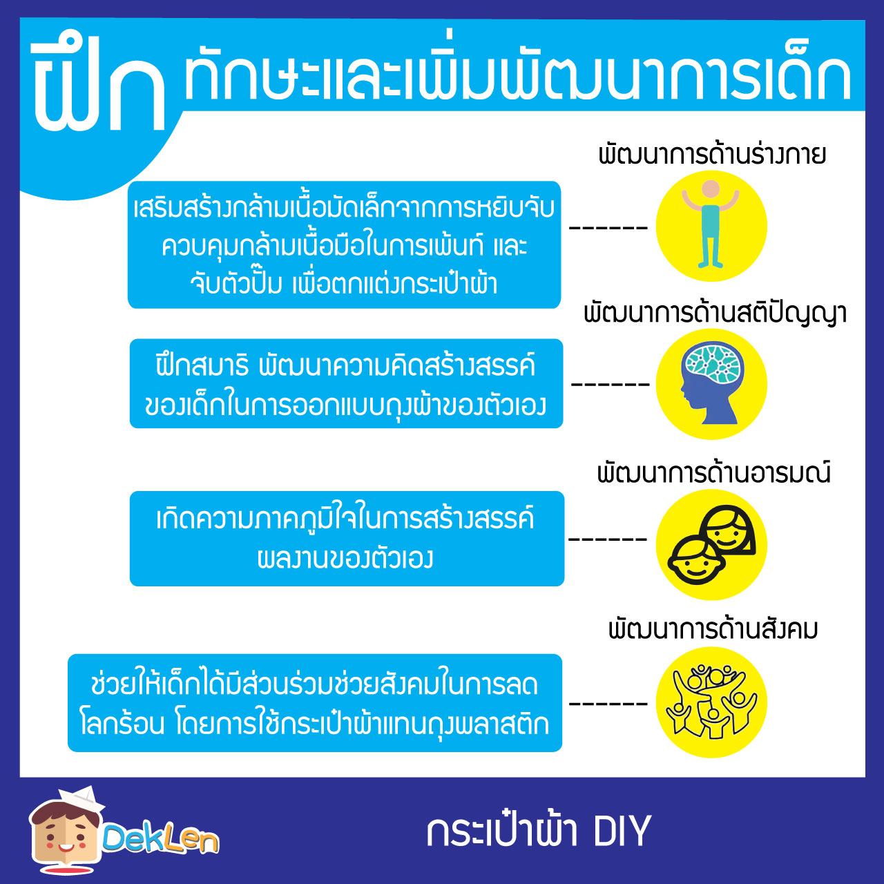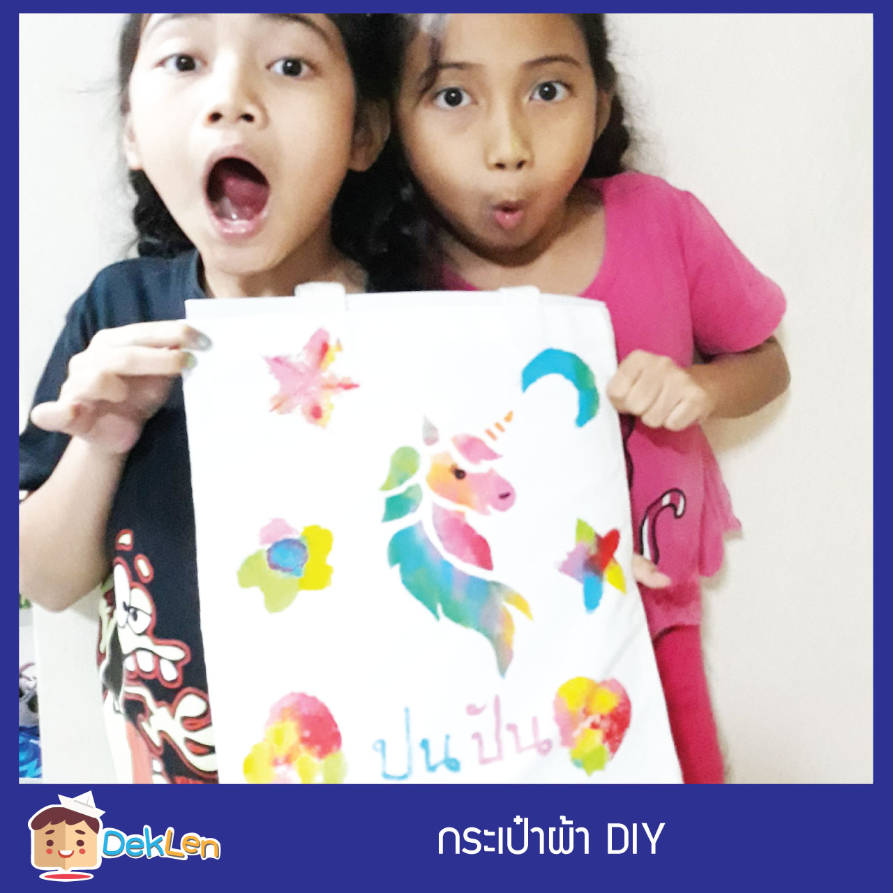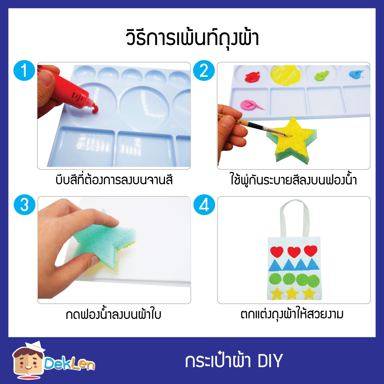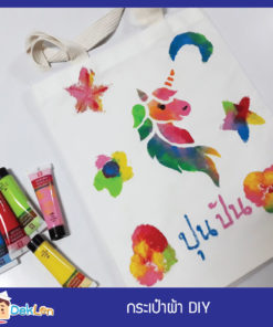 กระเป๋าผ้า DIY เป็นงานประดิษฐ์ DIY ที่น้องๆสามารถนำมาเพ้นท์และใช้ฟองน้ำปั๊มเป็นรูปต่างๆลงบนกระเป๋าผ้าได้ ซึ่งน้องๆก็จะได้ภูมิใจถุงผ้าฝีมือของน้องๆเองด้วย