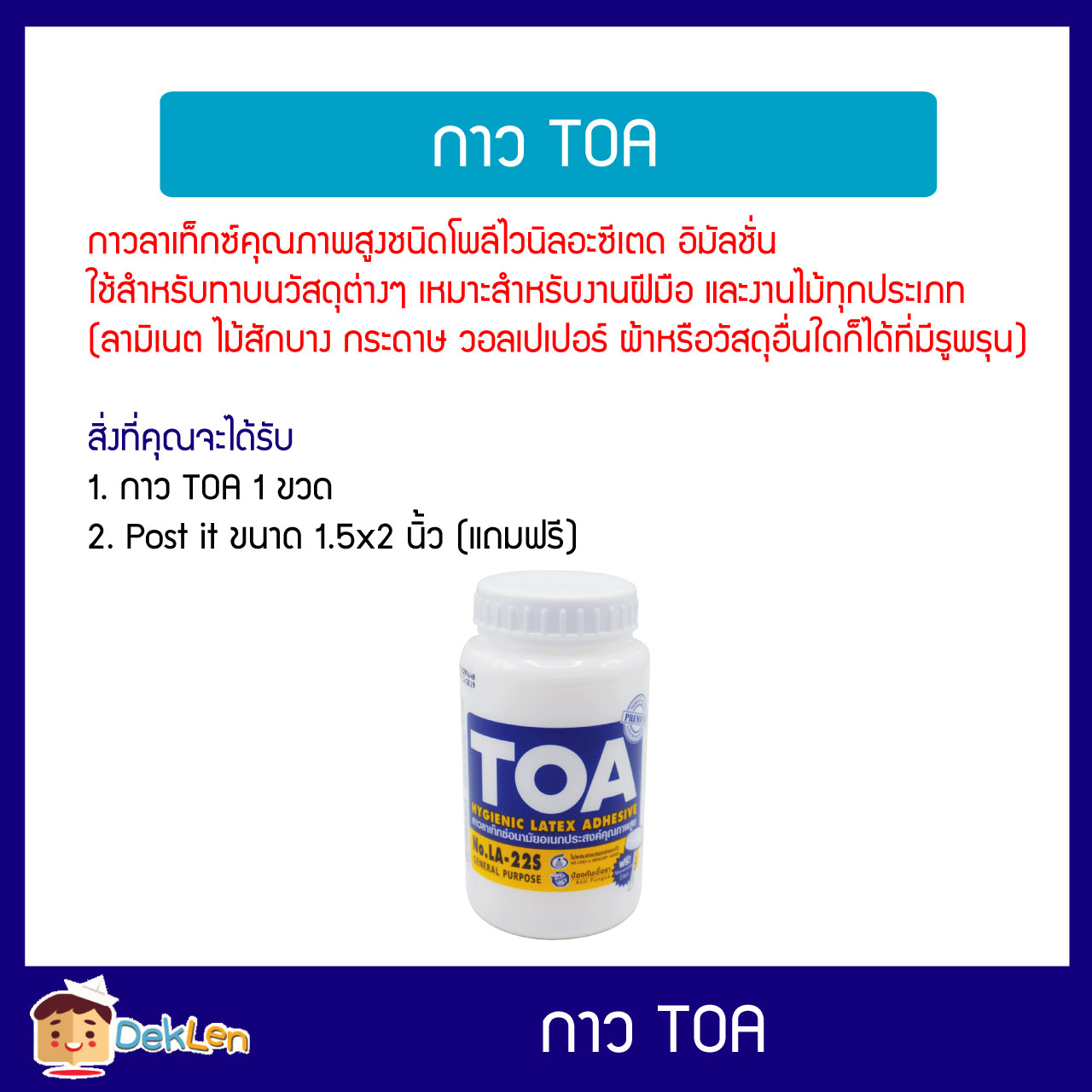 - Post it ขนาด 1.5×2 นิ้ว (แถมฟรี)