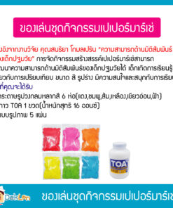 - ของเล่นชุดกิจกรรมเปเปอร์มาร์เช่ เป็นงานประดิษฐ์ที่ให้น้องๆได้ใช้จินตนาการในการสร้างสรรค์ผลงานศิลปะเป็นรูปต่างๆ