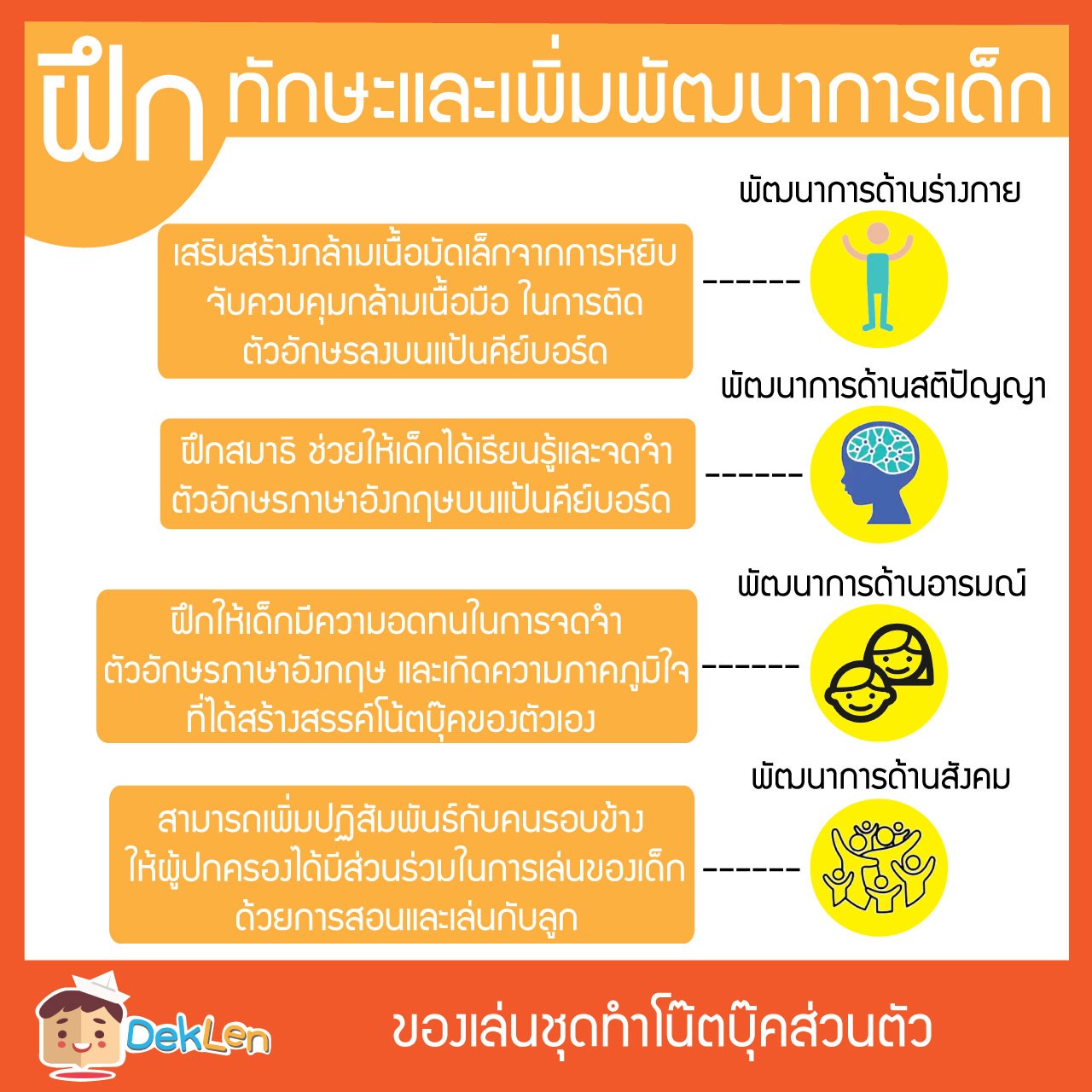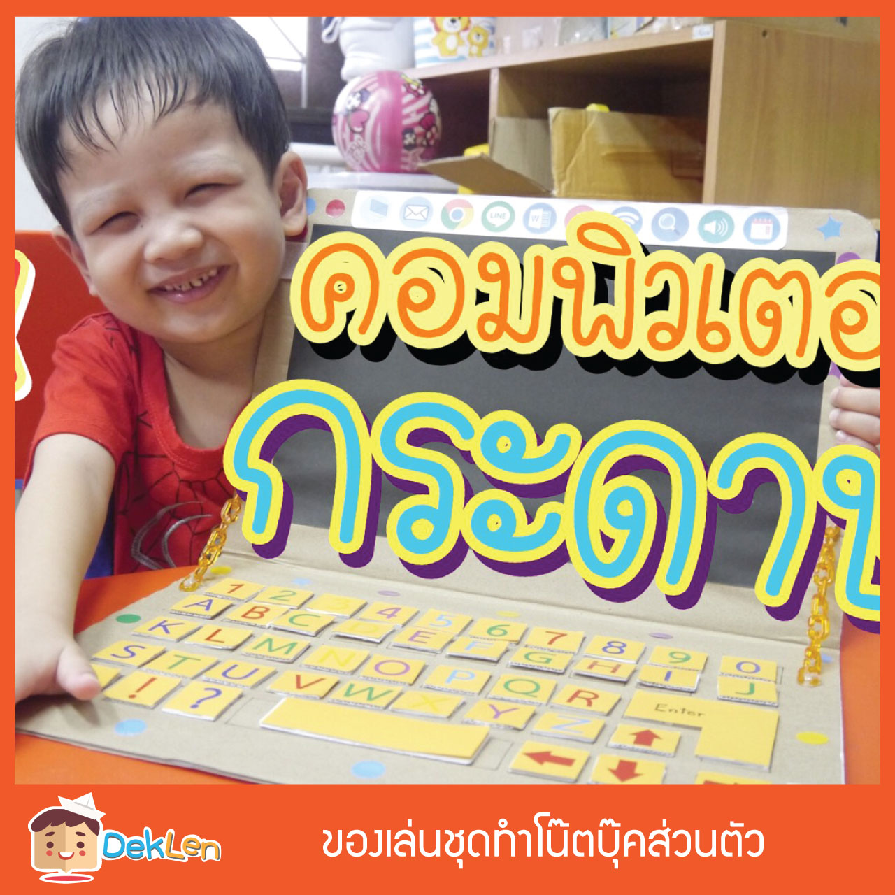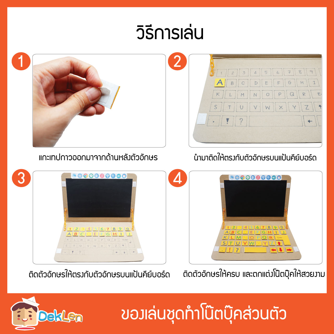 ของเล่นชุดทำโน๊ตบุ๊คส่วนตัว เป็นของเล่นDIY ที่ช่วยให้เด็กได้เรียนรู้ตัวอักษรภาษาอังกฤษ และตัวอักษรที่อยู่บนแป้นคีย์บอร์ด ให้เด็กได้ลองใช้โน๊ตบุ๊คที่จำลองมาจากของจริง
