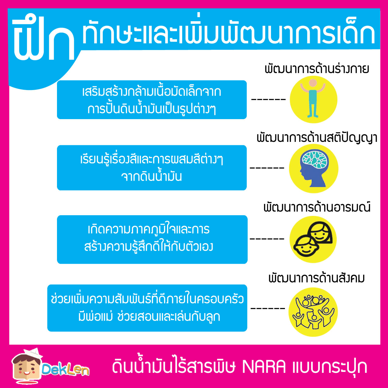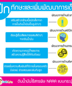 - ดินน้ำมันไร้สารพิษ เป็นของเล่นศิลปะที่ช่วยให้เด็กได้ใช้จินตนาการและความคิดสร้างสรรค์ในการสร้างผลงาน 3 มิติ