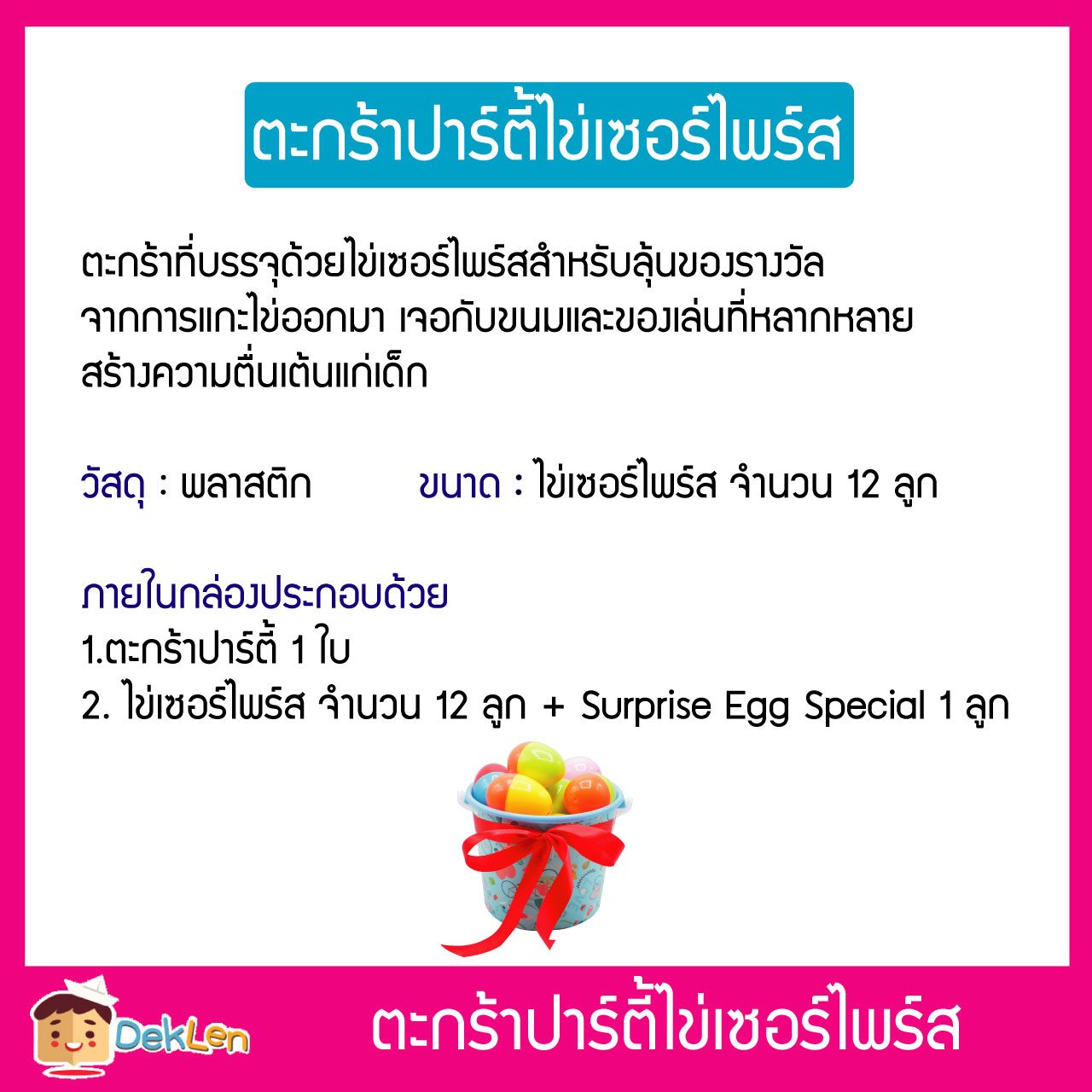 ตะกร้าปาร์ตี้ไข่เซอร์ไพร์ส 12 ลูก ลุ้นของรางวัล ขนมและของเล่นของขวัญสำหรับเด็ก สร้างความสุขและความสนุกสนานในงานเทศกาลต่างๆ