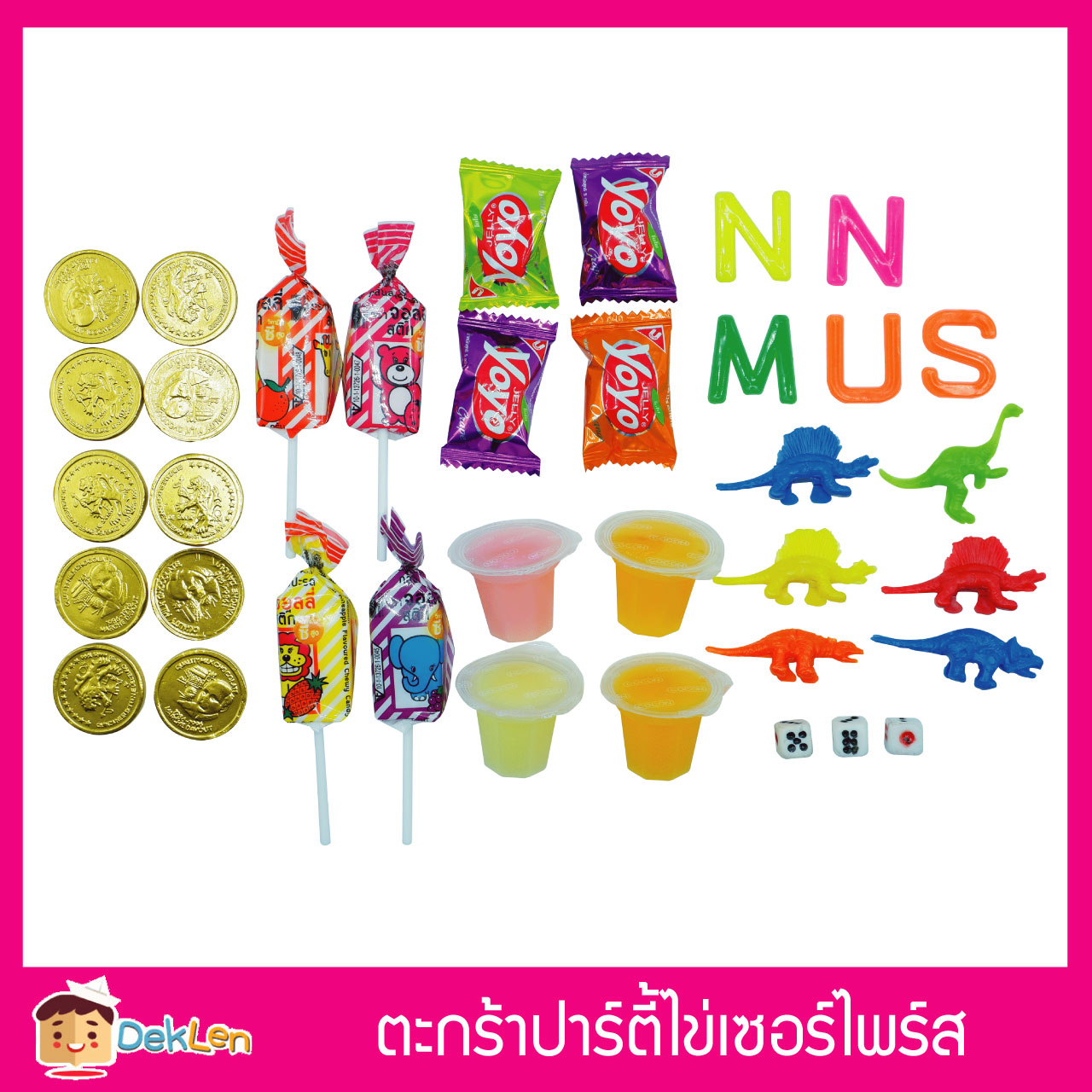 - ตะกร้าปาร์ตี้ไข่เซอร์ไพร์ส เป็นตะกร้าที่บรรจุด้วยไข่เซอร์ไพร์สสำหรับลุ้นของรางวัล จากการแกะไข่ออกมา เจอกับขนมและของเล่นที่หลากหลาย สร้างความตื่นเต้นแก่เด็ก