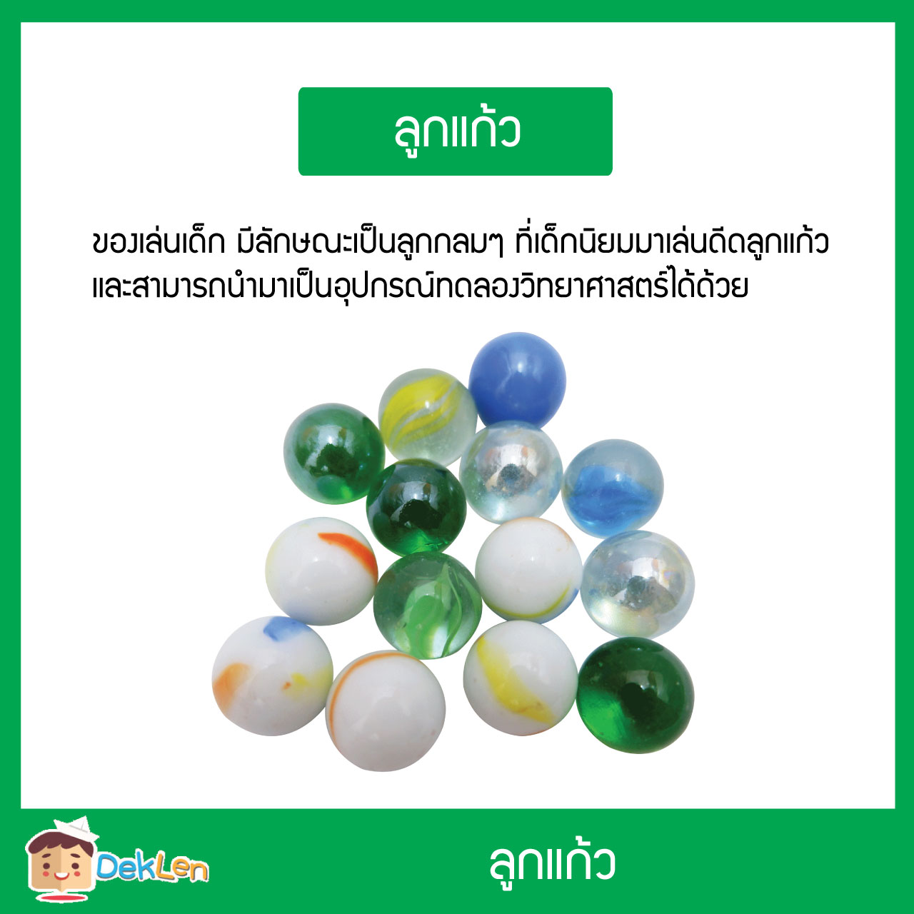 ของเล่นเด็ก มีลักษณะเป็นลูกกลมๆ ที่เด็กนิยมมาเล่นดีดลูกแก้ว และสามารถนำมาเป็นอุปกรณ์ทดลองวิทยาศาสตร์ได้ด้วย