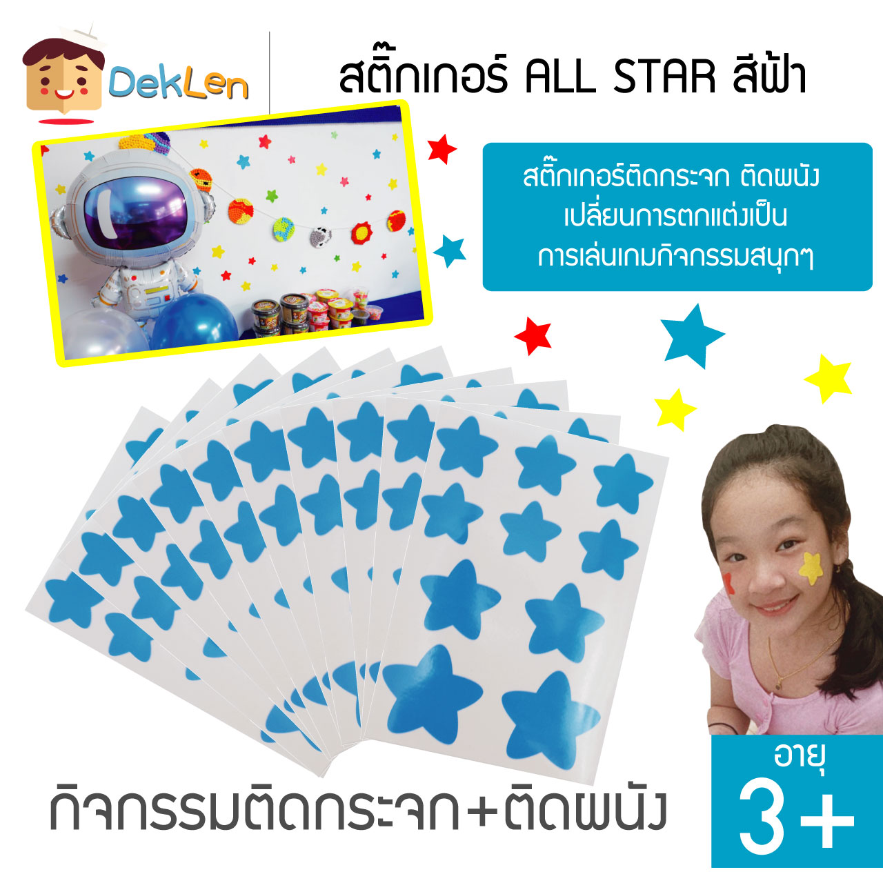 ภายในกล่องประกอบด้วย : สติ๊กเกอร์ ALL STAR สีฟ้า10 แผ่น