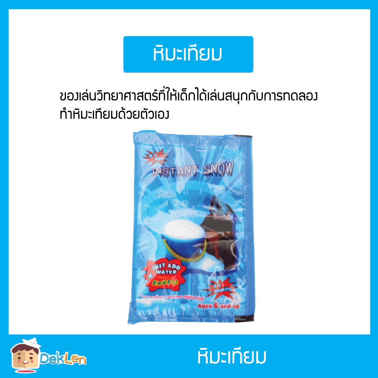 Tags: deklen, InstantSnow, kid, toy, toyreview, ของเล่น, ของเล่นวิทยาศาสตร์, ของเล่นเสริมพัฒนาการเด็ก, ทดลอง, ทดลองวิทยาศาสตร์, หิมะเทียม, เด็กเล่น