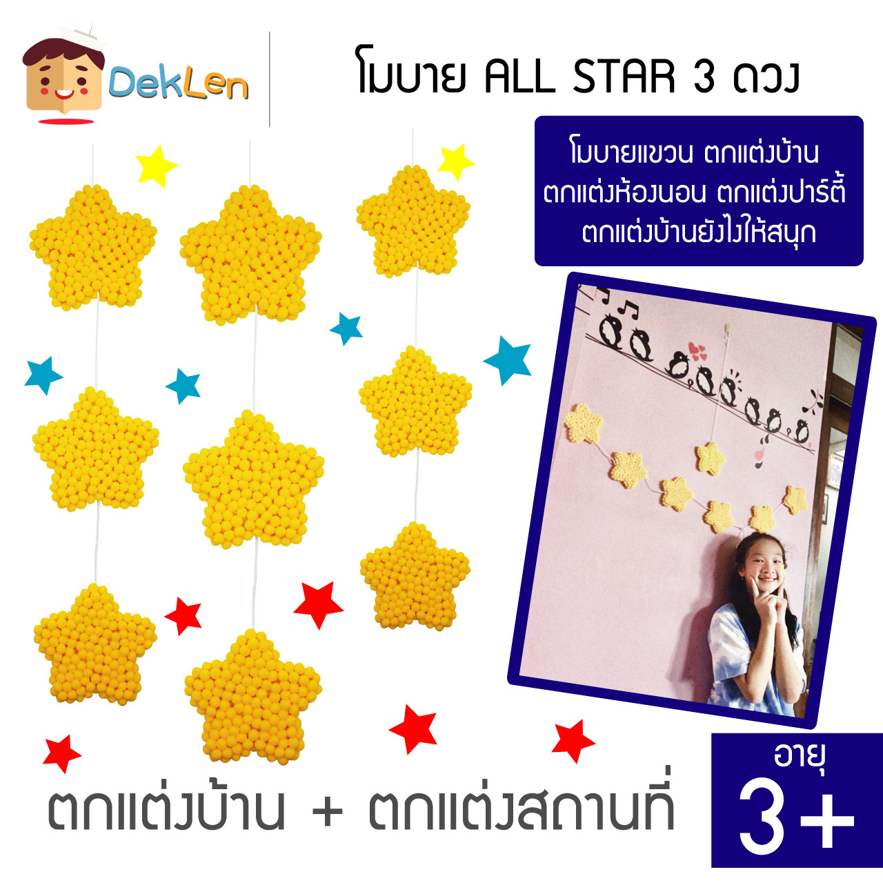 ภายในกล่องประกอบด้วย : โมบาย ALL STAR 3ดวง 1 เส้น