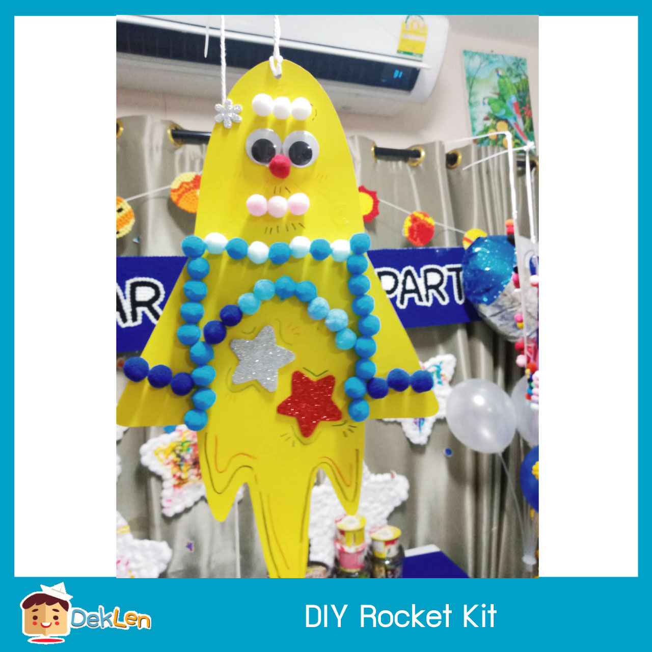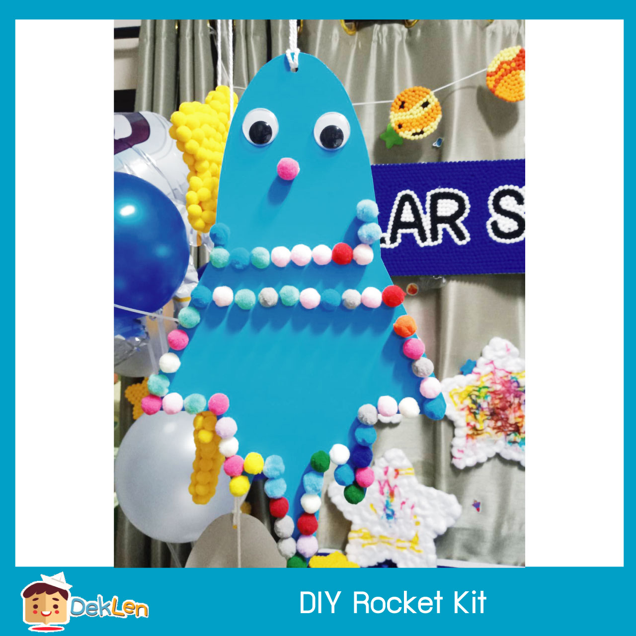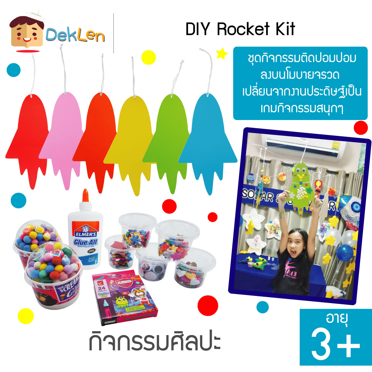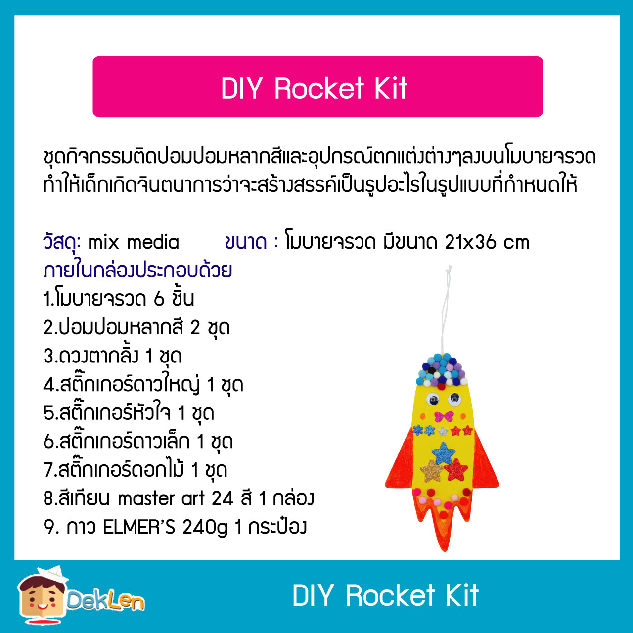 รายละเอียดสินค้า : DIY Rocket Kit เป็นชุดกิจกรรมติดปอมปอมหลากสีและอุปกรณ์ตกแต่งต่างๆลงบนโมบายจรวด ทำให้เด็กเกิดจินตนาการว่าจะสร้างสรรค์เป็นรูปอะไรในรูปแบบที่กำหนดให้ เมื่อตกแต่งเสร็จ สามารถนำไปแขวนตกแต่งบ้าน ตกแต่งสถานที่ได้ เพื่อแสดงถึงความภาคภูมิใจของเด็กๆ ที่ทำได้จนสำเร็จ คุณพ่อคุณแม่สามารถโชว์ผลงานของเด็กๆได้ด้วย