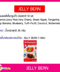 - JELLY BEAN เป็นขนมเยลลี่เคี้ยวรูปถั่ว มีรสชาติ 10 รส
