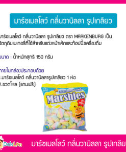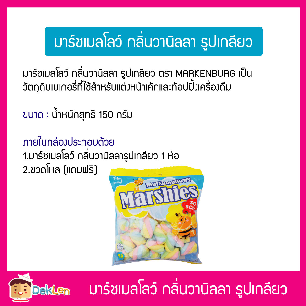 - มาร์ชเมลโลว์ กลิ่นวานิลลา รูปเกลียว ตรา MARKENBURG เป็นวัตถุดิบเบเกอรี่ที่ใช้สำหรับแต่งหน้าเค้กและท้อปปิ้งเครื่องดื่ม